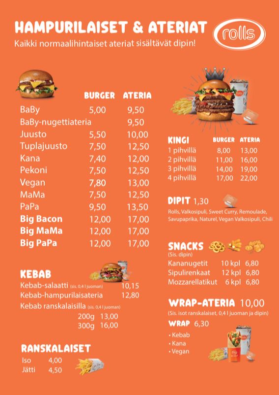 G&L Konttuurin tiloissa toimii myös Rolls-hampurilaisravintola. Saat mehevät burgerit, ranskalaiset ja muut suosikit nopeasti mukaan tai nautittavaksi paikan päällä. Kätevä vaihtoehto sekä reissussa että arjen nälkäkiireeseen.